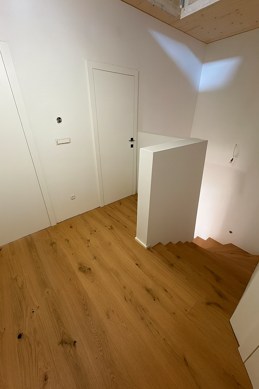 Zgrajeno iz večslojnih križno lepljenih lesenih plošč – za večjo stabilnost, odpornost na potrese in požarno varnost.