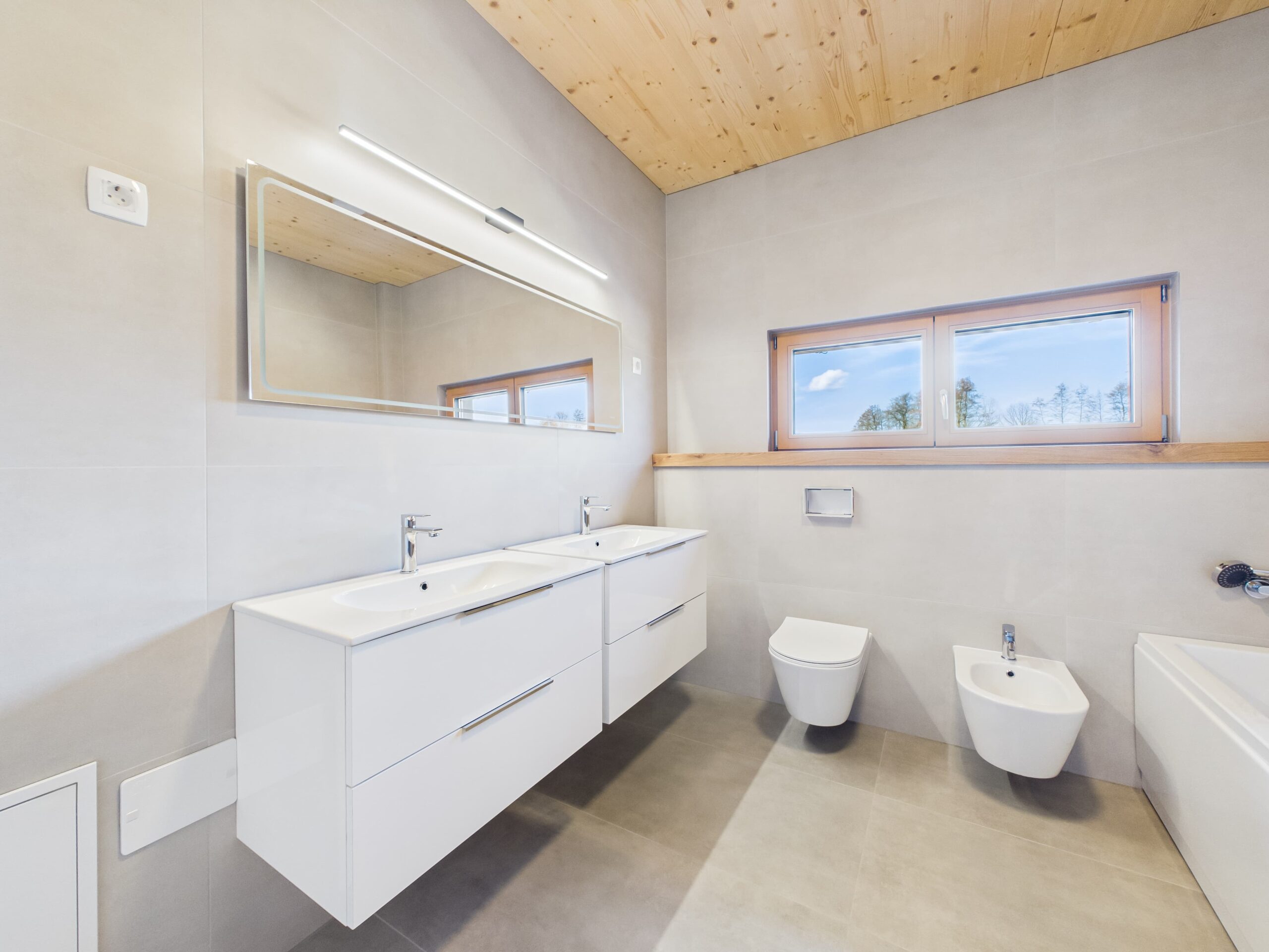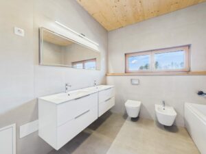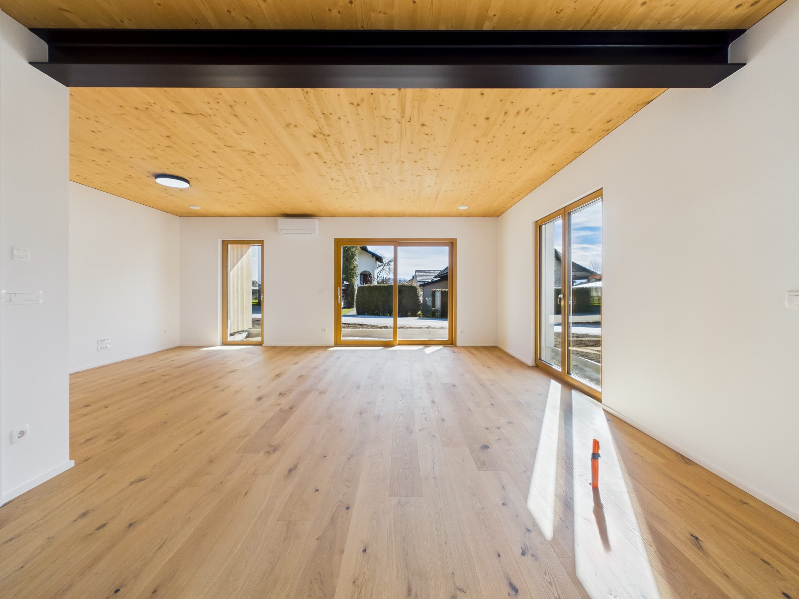 Zunanja izolacija iz celuloze in lesnih vlaken, zrakotesna izvedba, toplotna črpalka in rekuperacija – za udobno in varčno bivanje.
