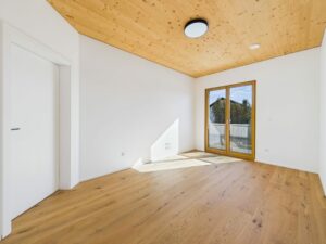 Zgrajeno iz večslojnih križno lepljenih lesenih plošč – za večjo stabilnost, odpornost na potrese in požarno varnost.
